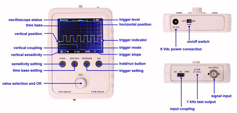 - thông số dạng sóng với màn hình kỹ thuật số, các thông số hiển thị là: tần số , thời gian, độ rộng xung, chu kỳ nhiệm vụ, tối đa, tối thiểu , trung bình , cao điểm, RMS