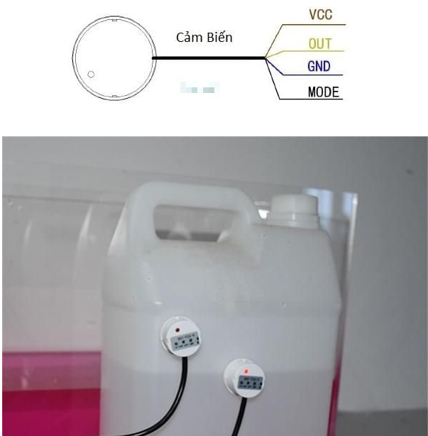 Cảm biến mực chất lỏng nhưng không tiếp xúc với chất lỏng- Y25, Y25 có thể áp dụng lên các thành bể cá, bể nước, bon nước(quăng t** cái bon) hay những vậy cần kiểm tra mức chất lỏng, thành nước là các phi kim như kính thủy tinh, mica hay nhựa, kim loại thì phải qua cách đấu như hình phía dưới.