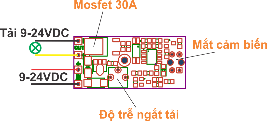 + Điện áp hoạt động 12-24VDC - Dòng không tải 10mA