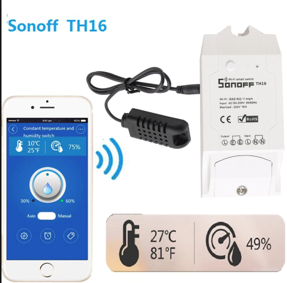 Công tắc điều khiển từ xa Wifi Smart Switch Sonoff TH16 có khả năng đóng ngắt tải tối đa lên đến 16A, ngoài ra nó còn có khả năng kết nối với cảm biến nhiệt độ, độ ẩm để truyền về phần mềm, dựa vào các thông số nhiệt độ độ ẩm trên phần mềm theo dõi để thiết đặt các cơ chế đóng ngắt công tắc qua nhiệt độ và độ ẩm, thích hợp cho các ứng dụng điều khiển từ xa qua internet, IoT,...