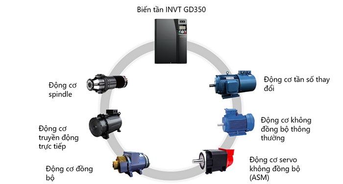 Sản phẩm biến tần 3 pha của hãng INVT: Biến tần GD10, GD20, GD200A, GD35, CHV110, CHV160A, BPJ1,…Khách hàng có thể lựa chọn sản phẩm biến tần phù hợp với nhu cầu sử dụng và loại động cơ hoạt động.