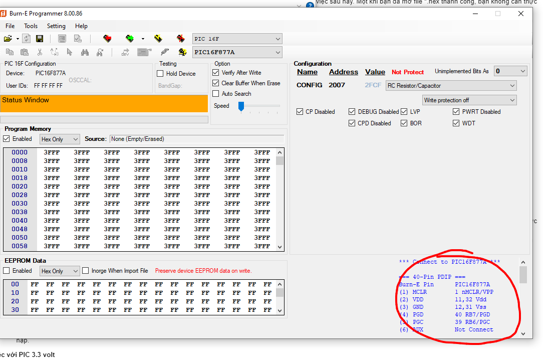 Verify All - Đối chiếu flash, eeprom và config của PIC với nội dung hiện có trên bảng dữ liệu của software.